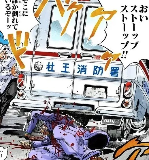 스타 플라티나로 오라오라당해서 날아가자마자 구급차라니