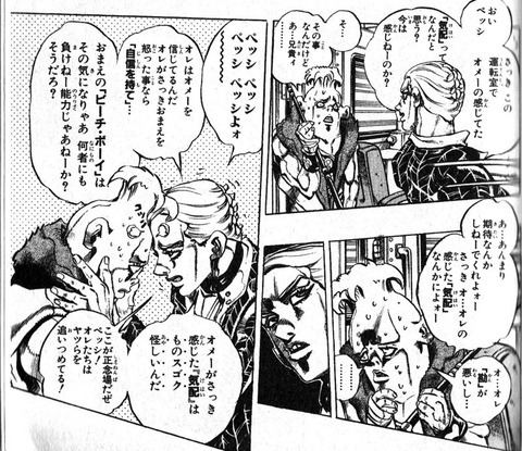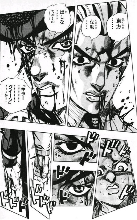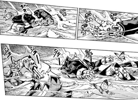 가만보면 죠죠는 정사각형 컷이 거의 없고, 대부분이 저런 컷으로 구성되어 있는 느낌이야.