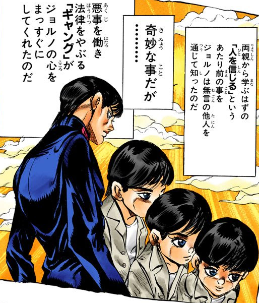 그러던 중 죠르노와 만나서 영혼에 생기를 되찾는다는 게 이게 최고 아닙니까!!! (갑자기 신나서 떠들어대는 오타쿠)