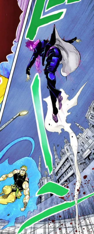 죠타로가 DIO의 주먹을 때린 반동으로 뜨는 것까지는 알겠는데, 그대로 계속 뜨려면 DIO가 고정되어 있을 필요가 있잖아.