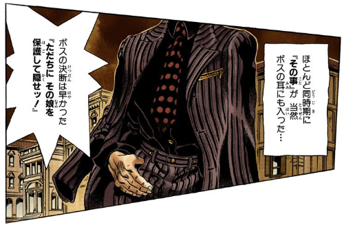 어쨌든간에 스탠드 능력자들을 많이 거느리고 있는 뒷세계 조직에서 자기 정체를 숨기기로 결정한 건 너무 합리적인 선택이라고 생각함.