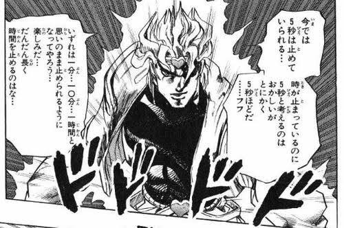 DIO도 시간이 정지된 세계에서 5초라니 좀 이상하지만 아무튼 5초다! 같은 얘기 했었잖아.