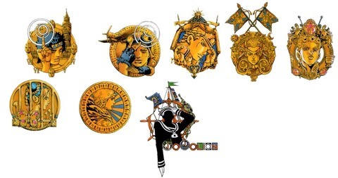 죠타로는 모자, 죠스케는 리젠트, 죠르노는 소라빵, 죠린은 경단머리, 죠니는 모자, 죠스케(8부)는 선원 모자.