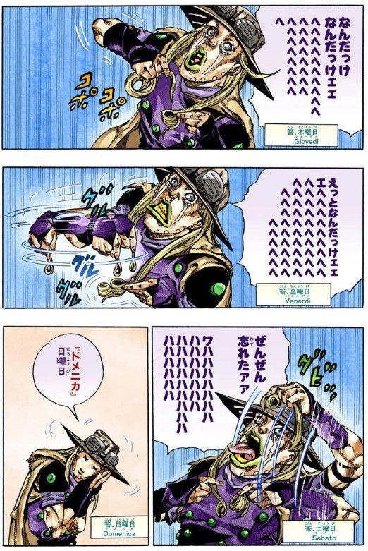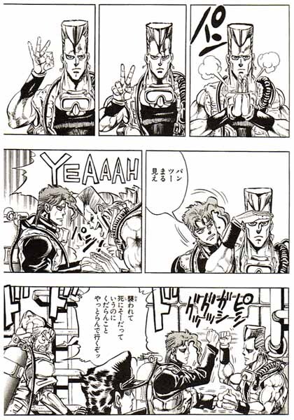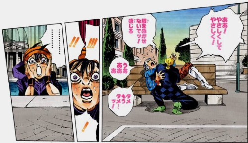 죠죠의 개그씬은 대체로 이게 뭔가 싶으면서도 점점 서서히 웃음이 터지는 느낌의 개그지.