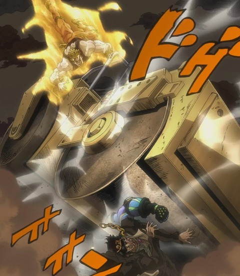 DIO: 자동차인가… 상당한 파워와 스피드다. 이 DIO가 태어나던 시절은 마차밖에 달리지 않았다.