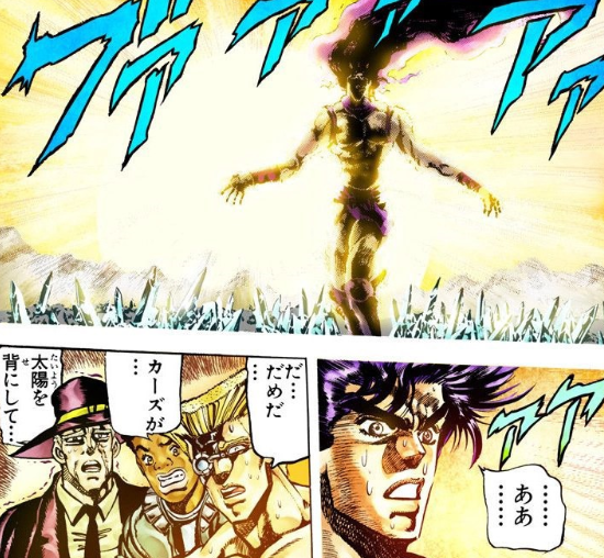 점프 게임을 통해 3부 죠셉의 존재는 이미 알고 있었는데도, 2부 애니로 저 장면 볼 당시에는 「설마 죠셉 여기서 죽는 거 아냐!?」 라는 생각이 들 정도로 절망적이었음.