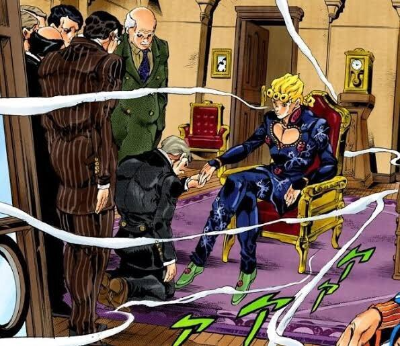 죠르노「저 죠르노 죠바나에게는 『꿈』이 있습니다. 이 거리를 빼앗으려면 거리를 지배하는 『조직』에 올라가 위로 올라가는 수밖에 없습니다!」