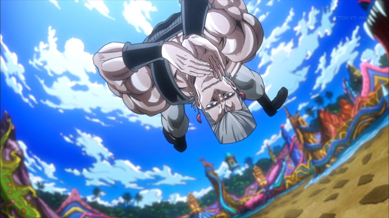 OVA에서는 의외로 성실하게 "스탠드의 힘으로 뛰어올랐다" 라는 느낌으로 묘사해줬다.