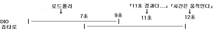 최종적으로 DIO는 11초, 죠타로는 3~4초.