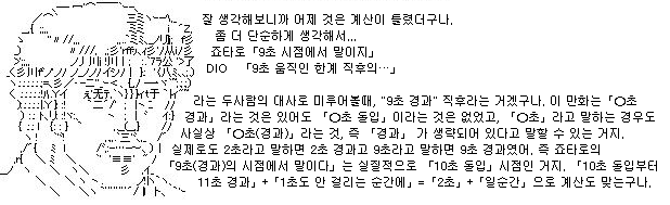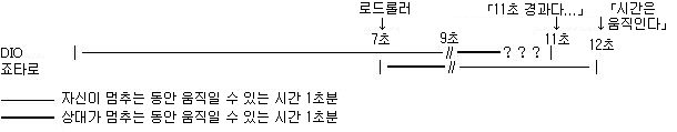 죠타로가 7초 시점에서 움직일 수 있었던 것도 DIO가 11초까지 움직일 수 있었던 것도 전부 설명할 수 있어.
