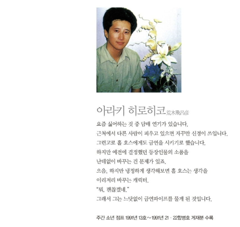 "담배 너무 싫어져서 만화속에도 다시는 등장시키지 않습니다" 같은 선언 해버려서