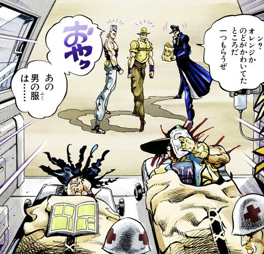 「죠타로 일행은 공격당했다는 것조차 모른 채 싸움은 끝나버렸답니다」라고 하는 나레이션도 있으니까, 실제로 어느 쪽이었는지는 확실하지 않은 느낌이야.
