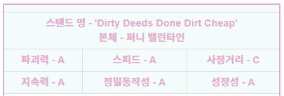 정신적인 성장과 함께 스탠드가 강해져가는 죠니와는 또 다른 형태로 보여주고 있기 때문에 좋아함.
