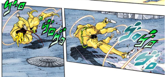 설령 스루했어도 이때의 DIO는 기어서 나아가는 것밖에 못하기 때문에, 맨홀을 지나쳐 나아가는 DIO의 뒤에서 뚜껑을 열고 천천히 기어나오면서 "기다려라... 도망칠 수는... 없다..." 멘트 날리면서 오라오라 했을 것 같고