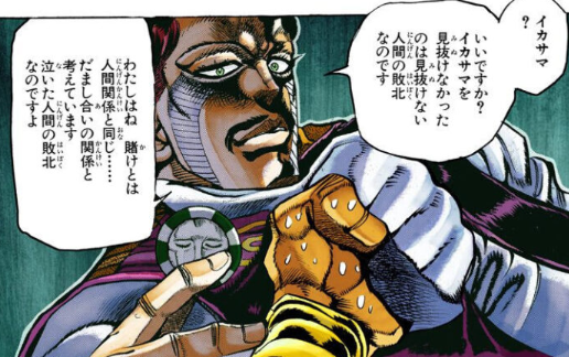뭐 죠스타 일행은 사기조차 도박의 일부라고 생각하기 때문에 인정하는 거겠지만...